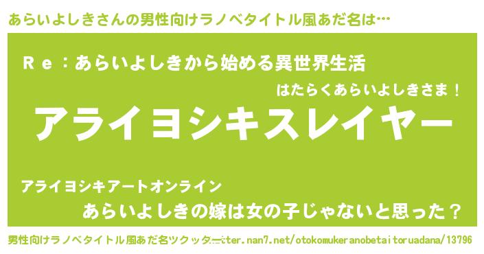 | ヘコむあだ名 | 『あらを』『あらにー』『なまこ酢』 |