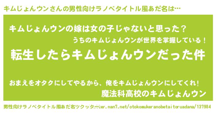 | 肩書あだ名 | 『キムじょんウン大将』 |