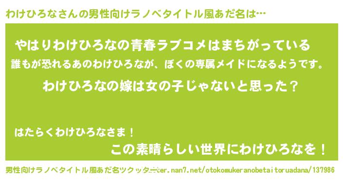 | 意味不明あだ名 | 『とにかく怪しいわけひろな』 |