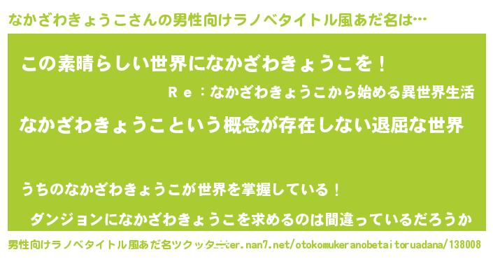 | 女子向けラノベタイトル風あだ名 | 『異世界で失敗しない100のなかざわきょうこ』 |