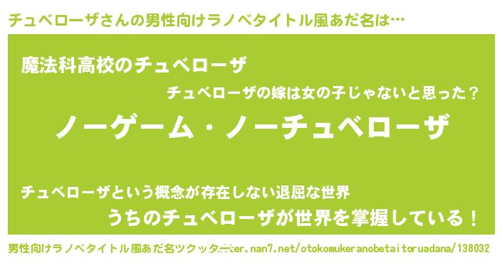 | 女子向けラノベタイトル風あだ名 | 『死神チュべローザの再婚』 |