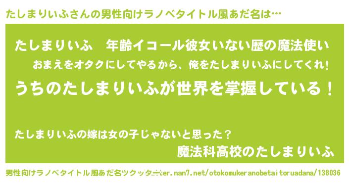 | 伝説のあだ名 | 『救世主となる錬金術士たしまりいふ』 |