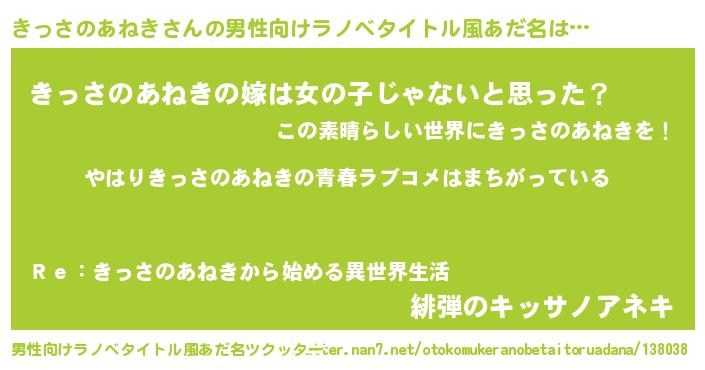 | ファンタジー風あだ名 | 『エターナルキッサノアネキー』 |