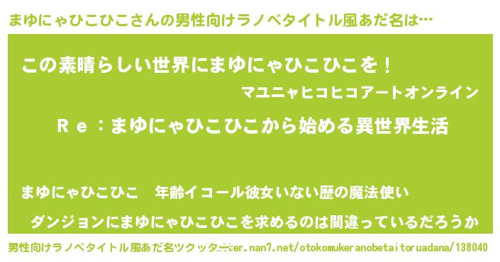 | 女子向けラノベタイトル風あだ名 | 『闇のまゆにゃひこひこ』 |