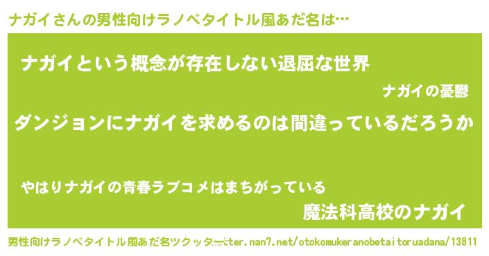| ヒーロー風カッコイイあだ名 | 『黄金騎士ナガ』『ネオナガイ』 |