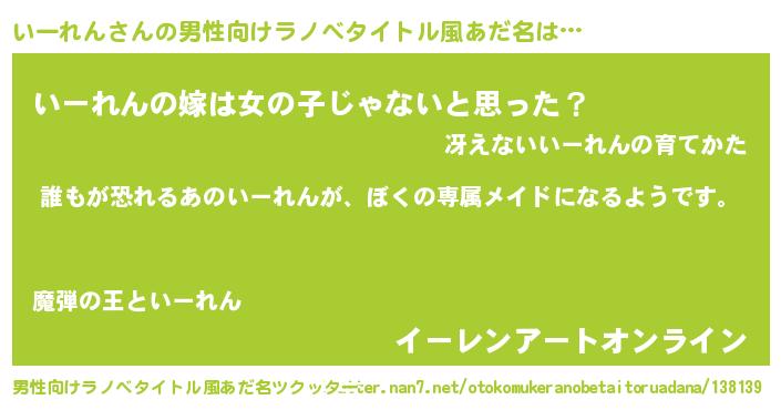 | 胡散臭い通販商品みたいなあだ名 | 『前代未聞の健康食品…その名も「いーれん」』 |