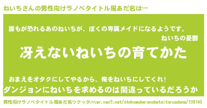 | 胡散臭い通販商品みたいなあだ名 | 『来世でも幸せになれる健康食品…その名も「ねいち」』 |