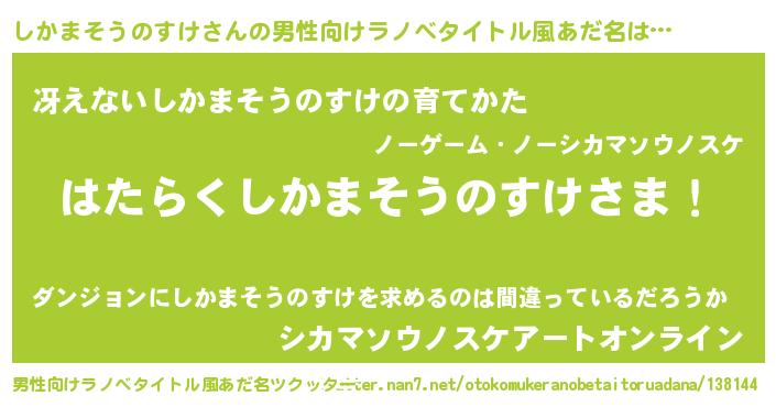 | 胡散臭い通販商品みたいなあだ名 | 『モテモテ間違いなし霊験あらたかなお札…その名も「しかまそうのすけ」』 |