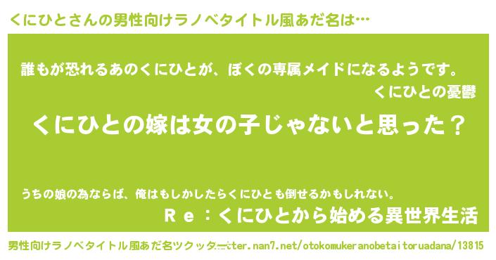 | 女子向けラノベタイトル風あだ名 | 『くにひと様がみてる』 |