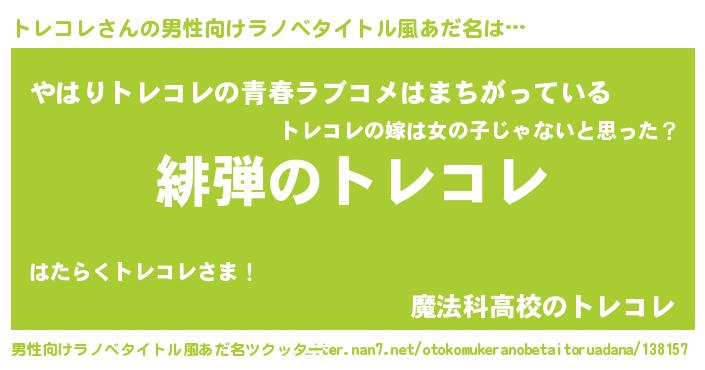 | 意味不明あだ名 | 『トレコレフォーエバー』『自称トレコレ』 |