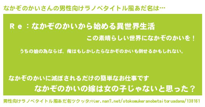 | ファンタジー風あだ名 | 『エターナルナカゾノカイー』 |