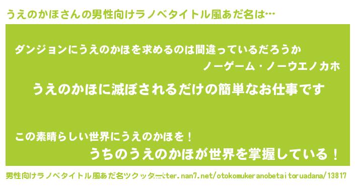 | ヘコむあだ名 | 『うえっ子』『うえのかほ(爆)』 |