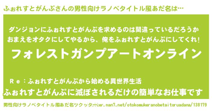 | 意味不明あだ名 | 『ペロリンふぉれすとがんぷ』 |