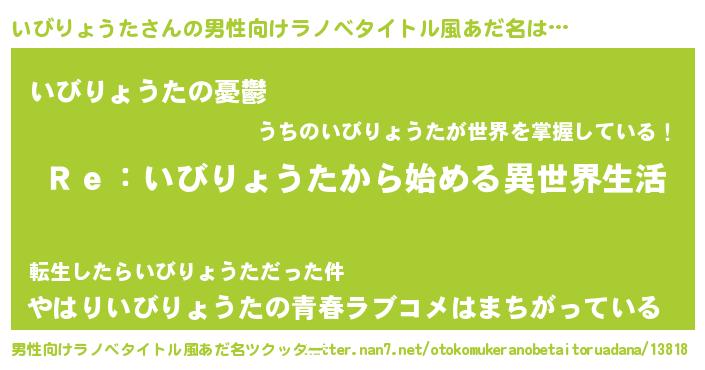 | 女子向けラノベタイトル風あだ名 | 『闇のいびりょうた』 |