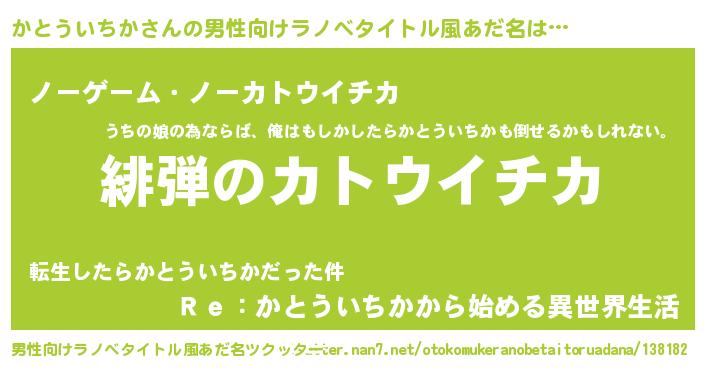 | 女子向けラノベタイトル風あだ名 | 『シンデレラかとういちか家の靴箱館』 |