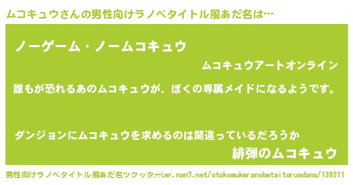 | 意味不明あだ名 | 『永久保存ムコキュウ』 |