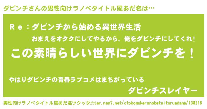 | 意味不明あだ名 | 『住所不定無職ダビンチ(47歳)』 |