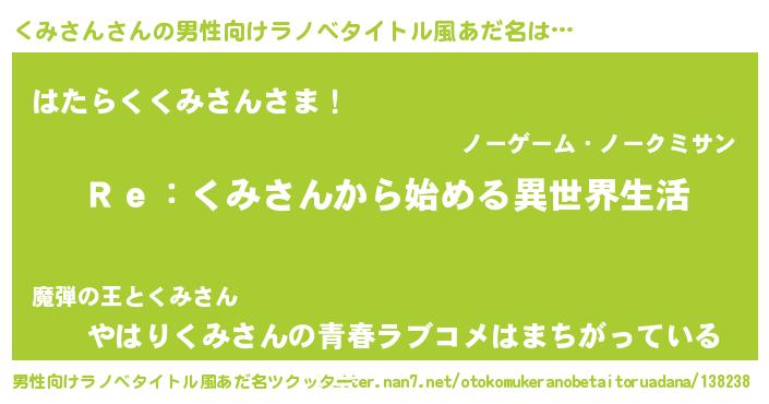 | 意味不明あだ名 | 『自称くみさん』『くみさんフォーエバー』 |