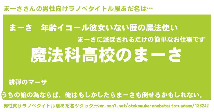 | 女子向けラノベタイトル風あだ名 | 『まーさなんてお断りですっ。』 |