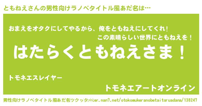 | 胡散臭い通販商品みたいなあだ名 | 『お金では代えられないイリジウム磁石…その名も「ともねえ」』 |