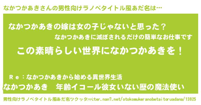 | 女子向けラノベタイトル風あだ名 | 『乙女ゲームの破滅フラグしかない悪役なかつかあきに転生してしまった…』 |