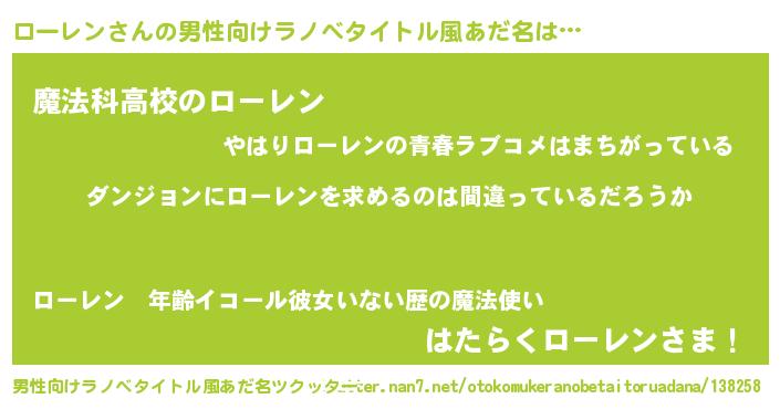 | ヒーロー風カッコイイあだ名 | 『魔戒騎士ロー』『究極戦士ローレン』 |