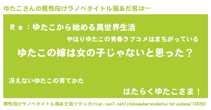 | 女子向けラノベタイトル風あだ名 | 『ゆたこ様がみてる』 |