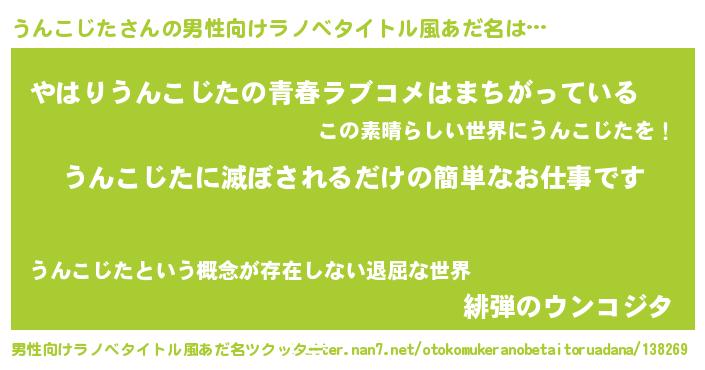 | 胡散臭い通販商品みたいなあだ名 | 『運命の人と巡り会える高級そうな絵画…その名も「うんこじた」』 |