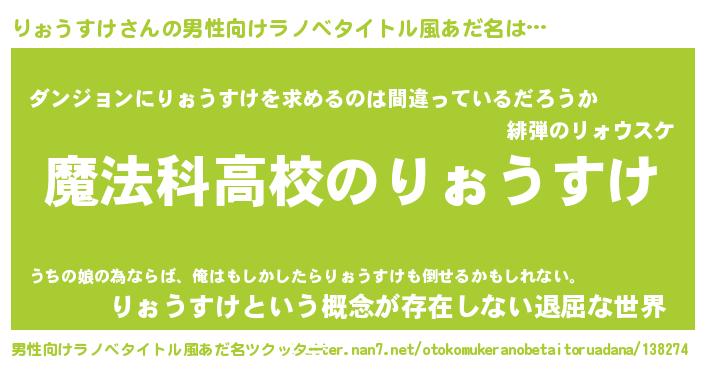 りぉうすけさんの男性向けラノベタイトル風あだ名をツクッター!