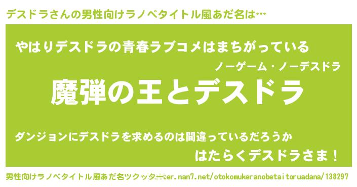 | 意味不明あだ名 | 『住所不定無職デスドラ(5歳)』 |