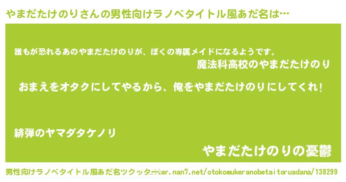 | ヘコむあだ名 | 『やまだたけのり(遠い目)』『やまっふぃ~』 |