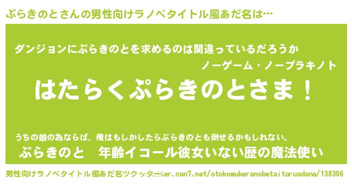 | 伝説のあだ名 | 『孤高の魔法使いぷらきのと』 |