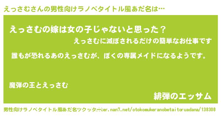| ヘコむあだ名 | 『えっさむ(苦笑)』『えっお』『豆乳』 |