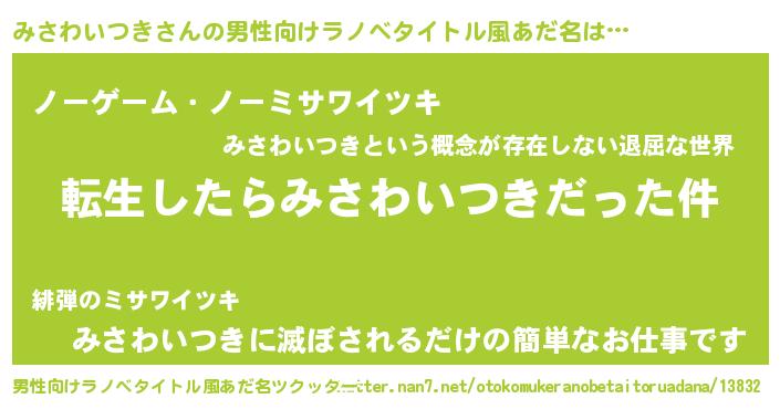 | 肩書あだ名 | 『みさわいつき少将』『みさわいつき教授』 |