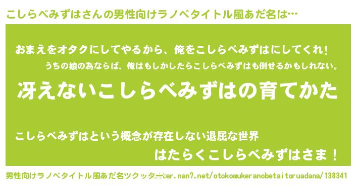 | 女子向けラノベタイトル風あだ名 | 『男装こしらべみずはの憂鬱な任務』 |