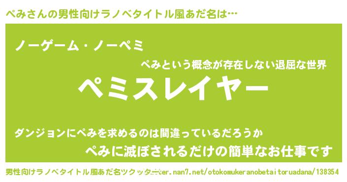 | ヘコむあだ名 | 『ぺみ(苦笑)』『ぺみっぺ』 |