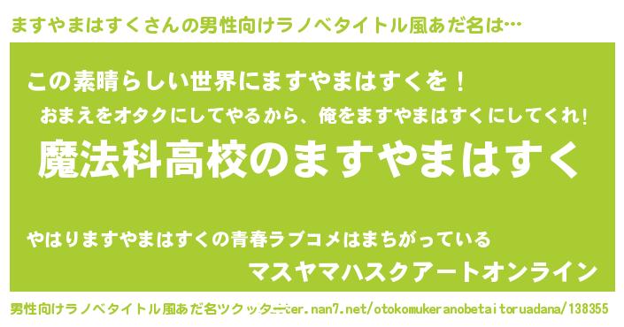 | 女子向けラノベタイトル風あだ名 | 『ますやまはすくなんてお断りですっ。』 |
