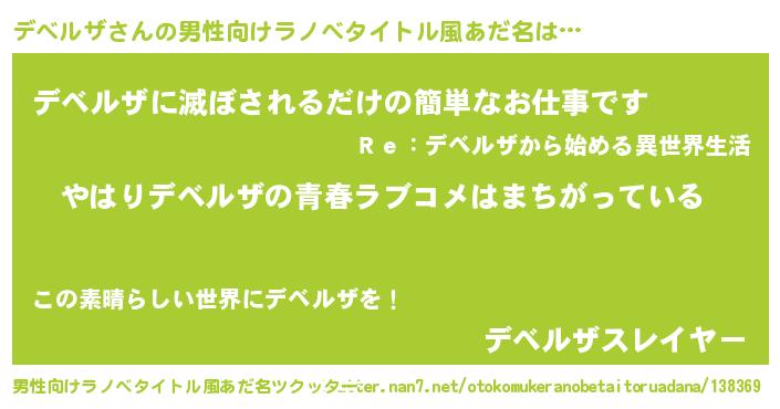 | 意味不明あだ名 | 『デベルザフォーエバー』『自称デベルザ』 |