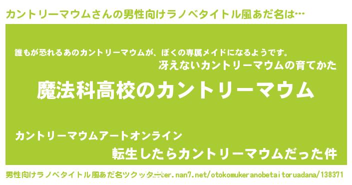 | 女子向けラノベタイトル風あだ名 | 『カントリーマウムアンティーク』 |