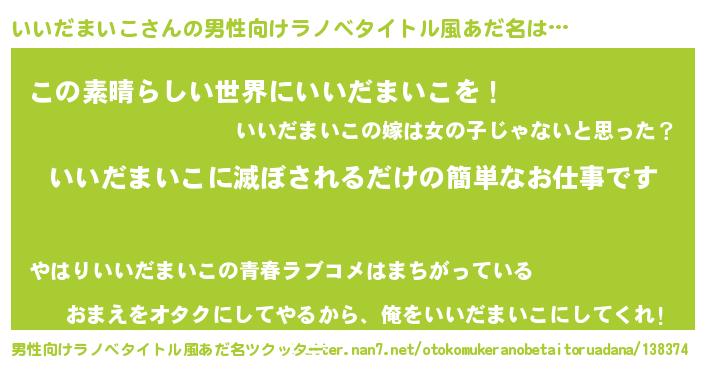 | 胡散臭い通販商品みたいなあだ名 | 『あなたにだけ特別に提供する世界で10本だけ現存している希少なブランデー…その名も「いいだまいこ」』 |