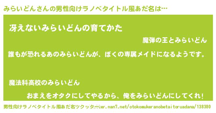 | 女子向けラノベタイトル風あだ名 | 『みらいどんの契約王妃』 |