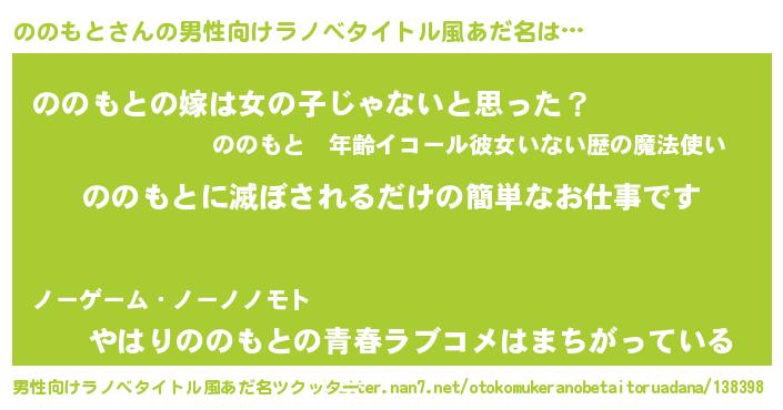| 胡散臭い通販商品みたいなあだ名 | 『伝統あるサプリメント…その名も「ののもと」』 |