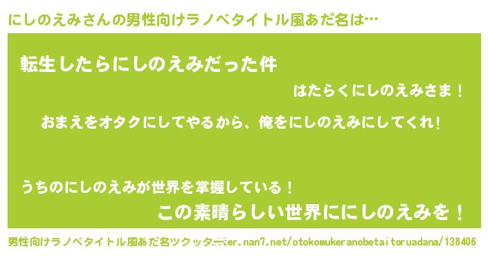 | 女子向けラノベタイトル風あだ名 | 『にしのえみ恋絵巻』 |