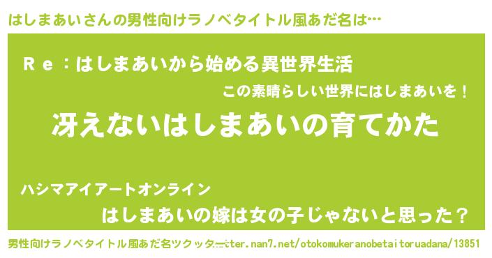 | ヒーロー風カッコイイあだ名 | 『ウルトラ戦士ハシマアイ』 |