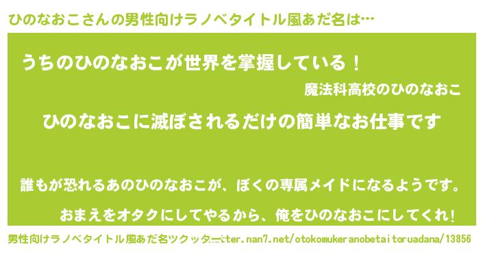 | ヘコむあだ名 | 『ひのなおこ(爆)』『ひのっふぃ~』 |