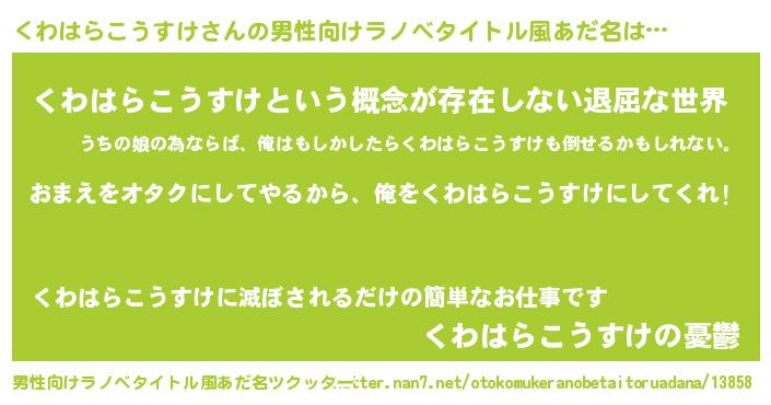 | ヘコむあだ名 | 『くわはらこうすけ(遠い目)』『くわふぇ~』 |