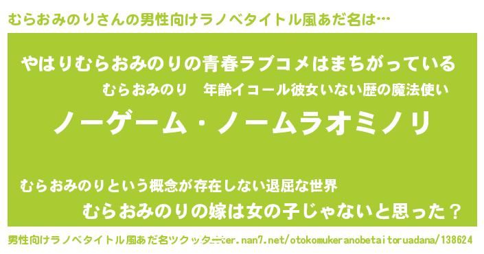 | 女子向けラノベタイトル風あだ名 | 『むらおみのり恋絵巻』 |