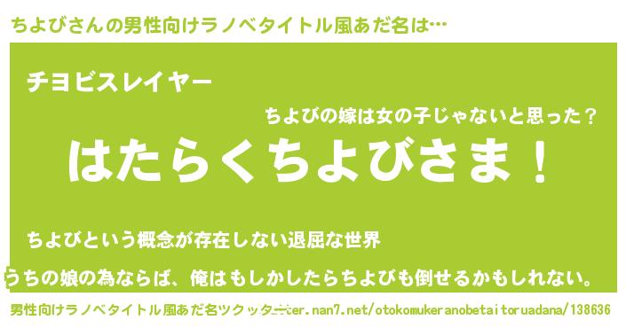 | 胡散臭い通販商品みたいなあだ名 | 『幸せが訪れる高級そうな壺…その名も「ちよび」』 |