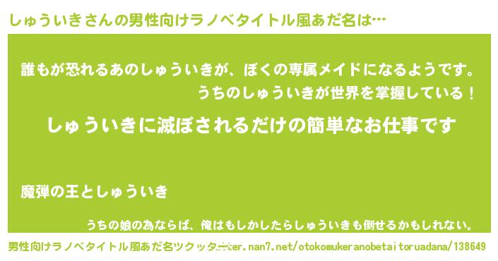 | ヒーロー風カッコイイあだ名 | 『ネオシュウイキ』『仮面シュダー』 |
