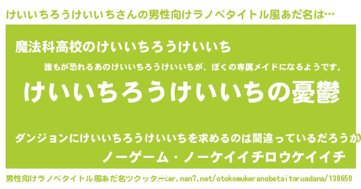 | 女子向けラノベタイトル風あだ名 | 『(仮)けいいちろうけいいちのやんごとなき事情』 |